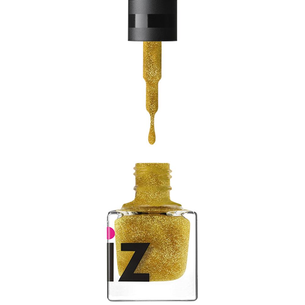 A fine gold glitter dust nail polish top coat that can be applied on top of any colour. Remove excess product off the brush before applying for a subtle gold sparkle.