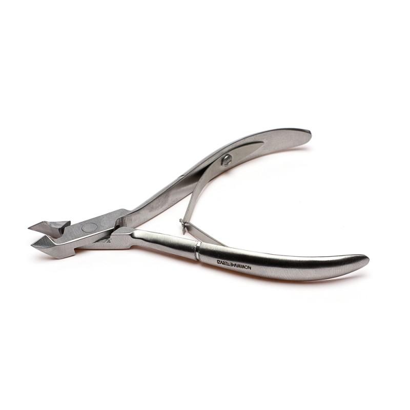 Sturdy metal cuticle nippers with pointed tips for precise cutting.