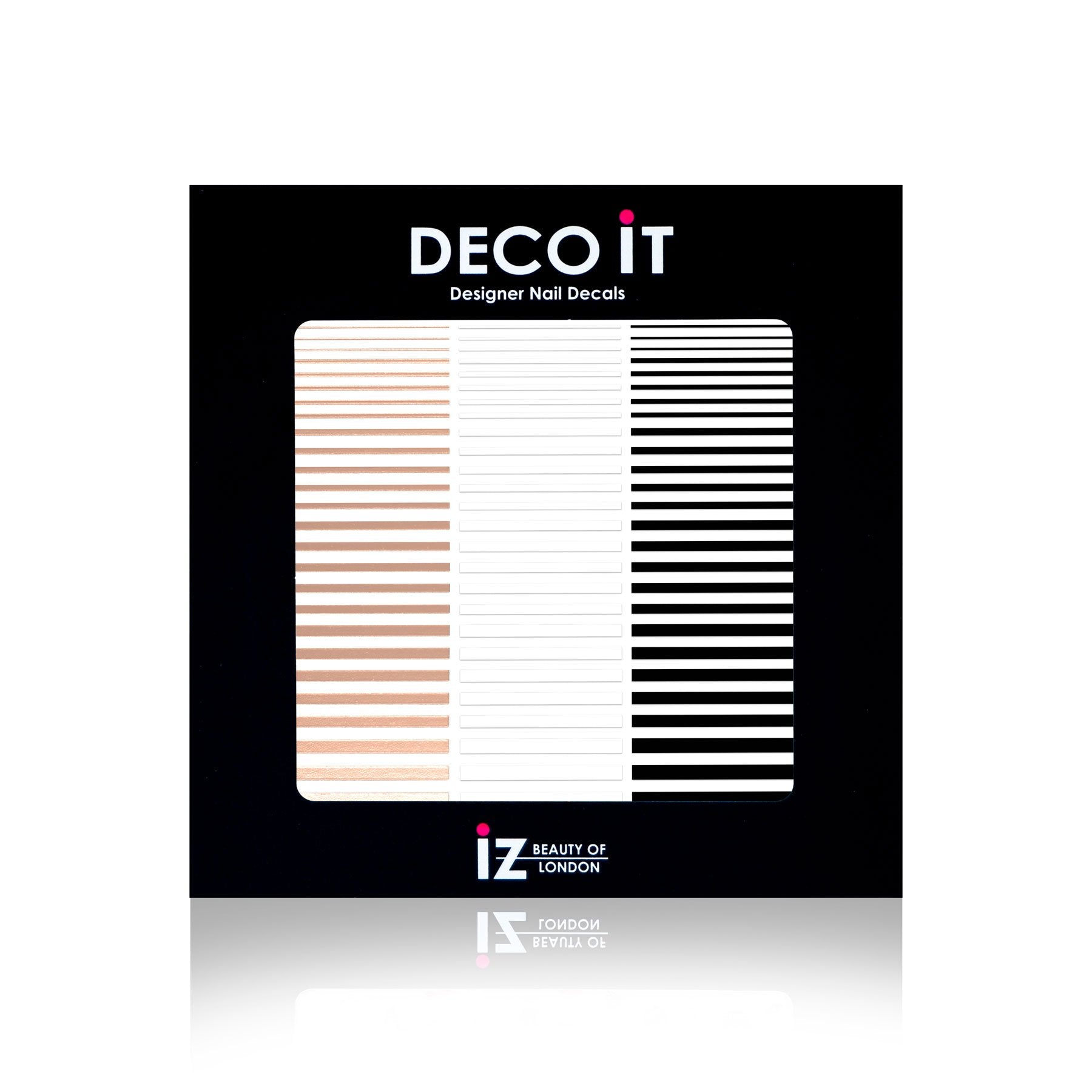 Straight line nail art in seconds. A great alternative to striping tape, these decals include rose gold, black and white stripe nail stickers.