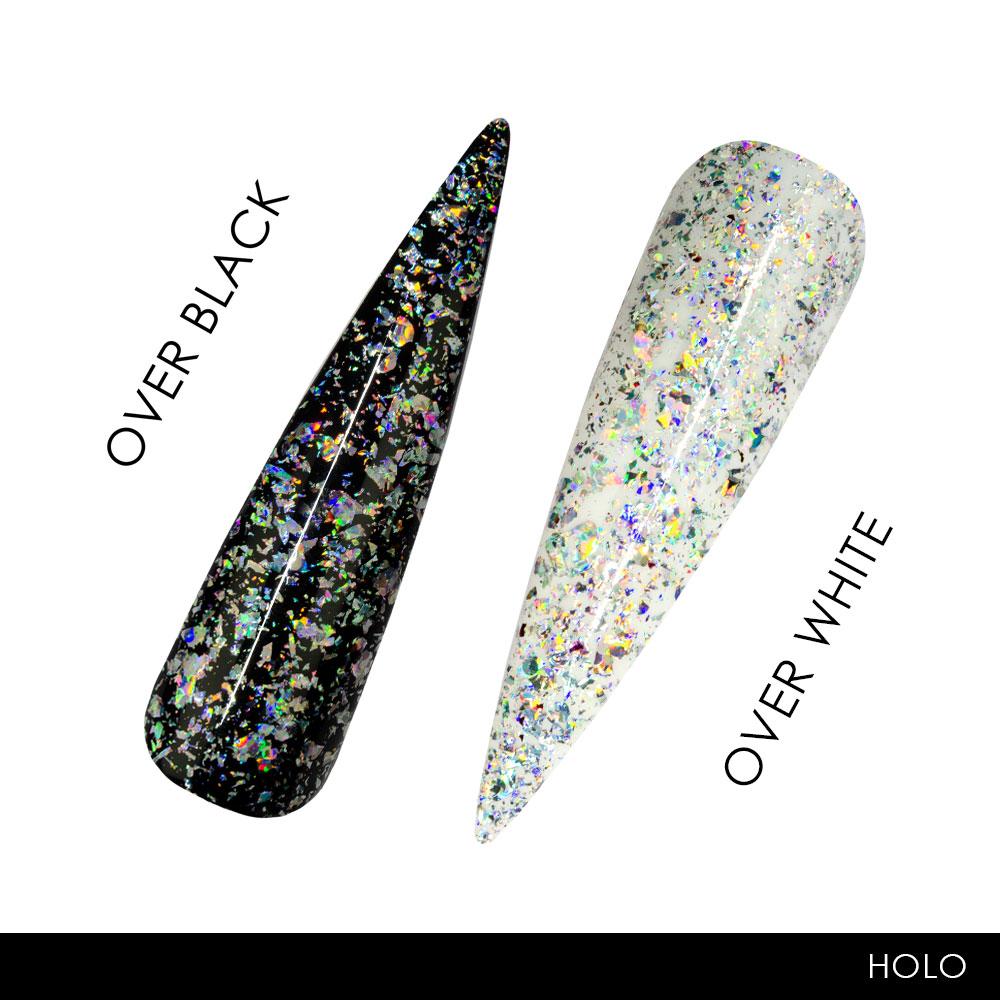 Create show-stopping nails with our Silver Holographic Metallic Chrome Flakes that can be applied over any base colour! Get creative with these easy to use fine flakes that will create a gorgeous holographic silver sparkle; mix and match with other flakes for a manicure that really has the wow factor!