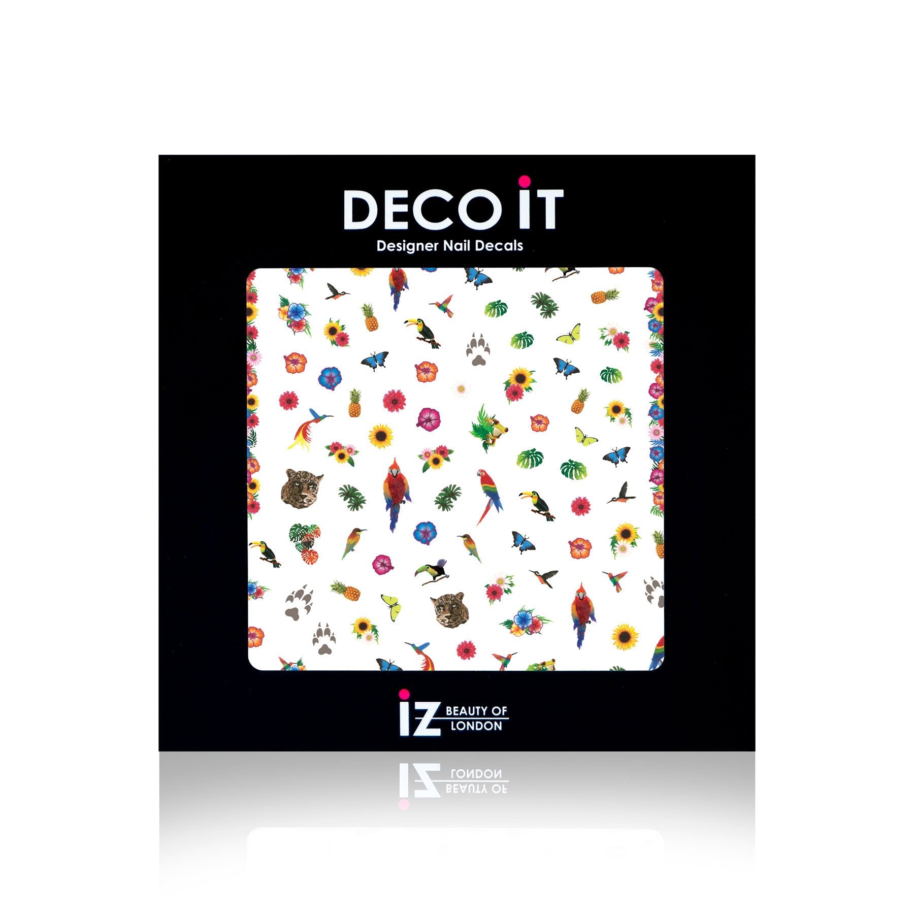 Bring the rainforest to your fingertips with these super fun decals, featuring tropical flowers, paw prints and pineapples.