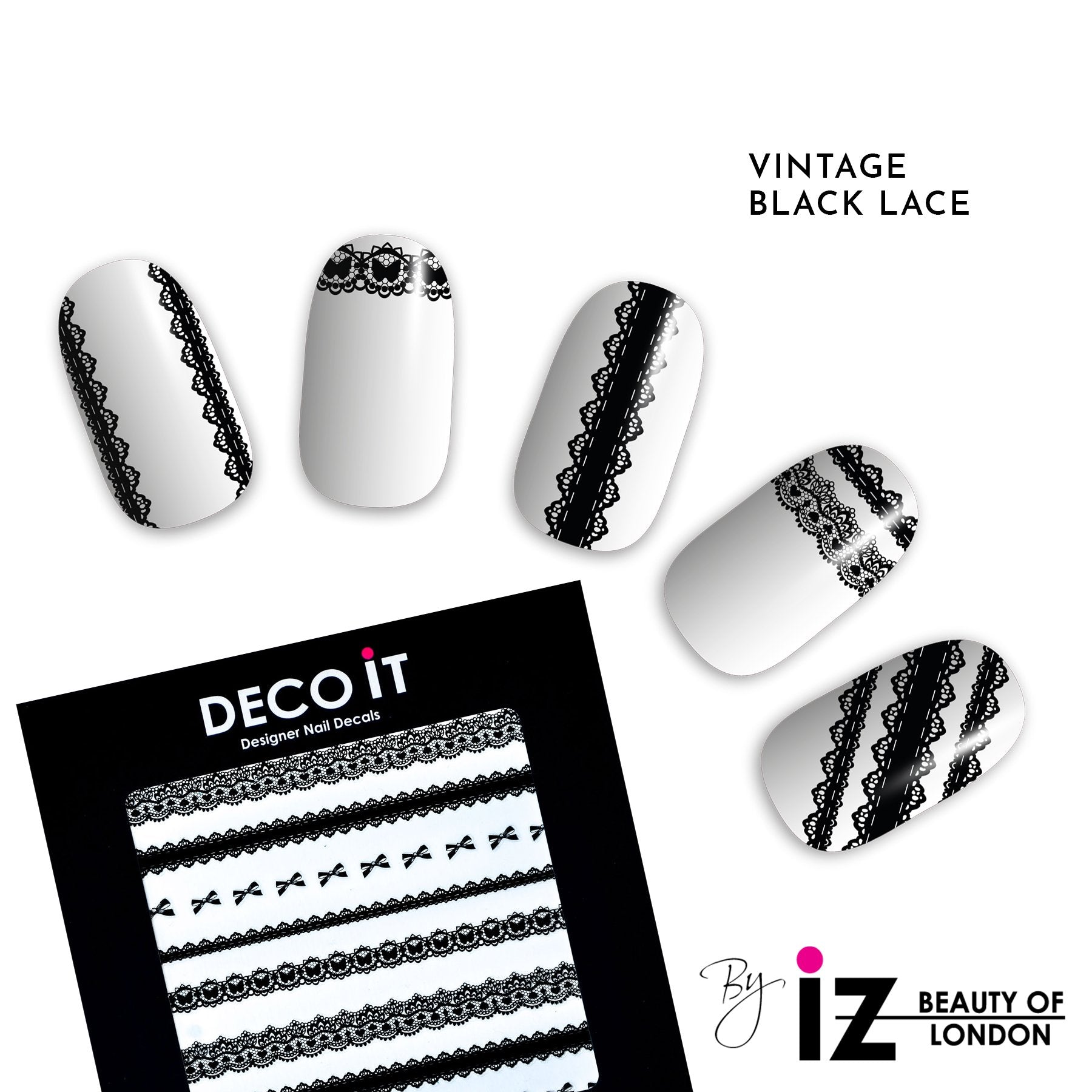 Create 3D fabric texture for a unique fashion look with these catwalk classic Black Vintage Lace decals.